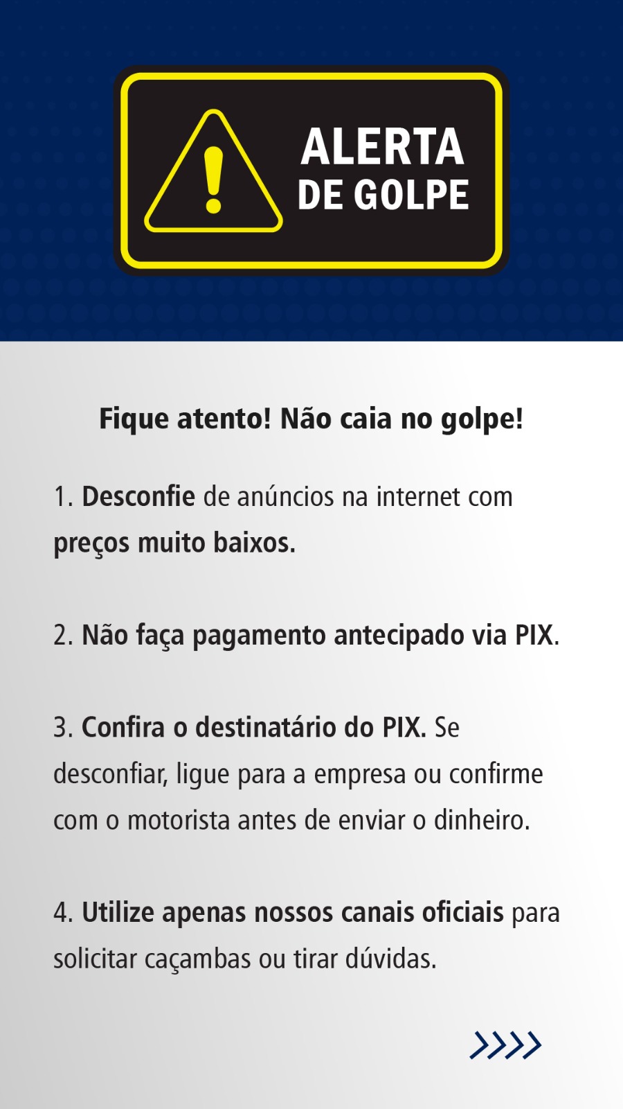 Cada uma das nossas caçambas tem capacidade para até 6 toneladas e ficam em média até três dias no local. Apesar da grande capacidade, as caçambas, por lei, têm limite de altura que não podem ser ultrapassados.